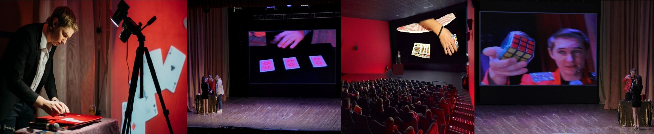 The magic happens on the table – the camera transmits the image live to the projector – and then to a large screen 5 by 10 meters. Everyone will see this magic, even the people in the last rows. The magician does incredible tricks with an iPhone, watches, coins, cards, money, etc. This is world class manipulation. All the action takes place to beautiful instrumental music. If you are tired of “sand shows” and want something fresh and truly amazing, then this show is for you.